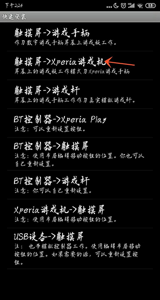 然后选择第二个,切换为xperia游戏手柄