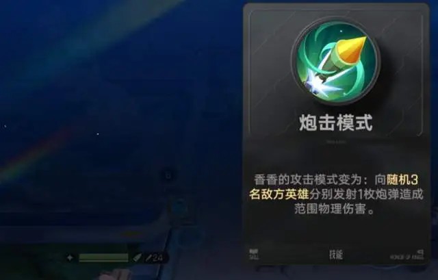 效果:向随机3名敌方英雄分别发射1枚炮弹造成范围物理伤害。