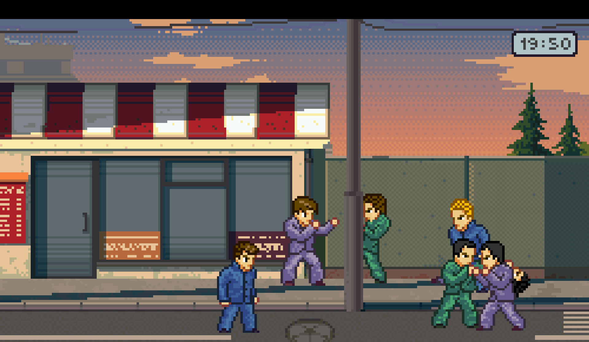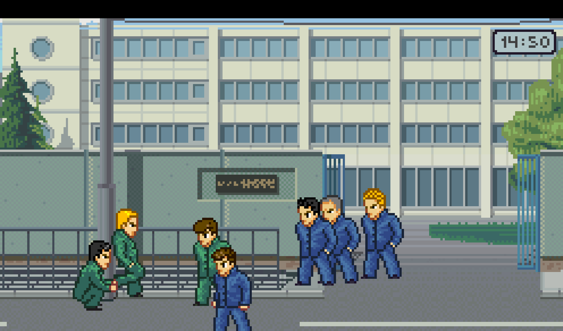day21:(支线)如果之前把紫衣服的人打了在星期天会收到挑战书,可以在第二天前往酒吧路上的这片草地与他们的老大决斗,胜利后会和该学校结盟(打架的时候他们会帮你)。